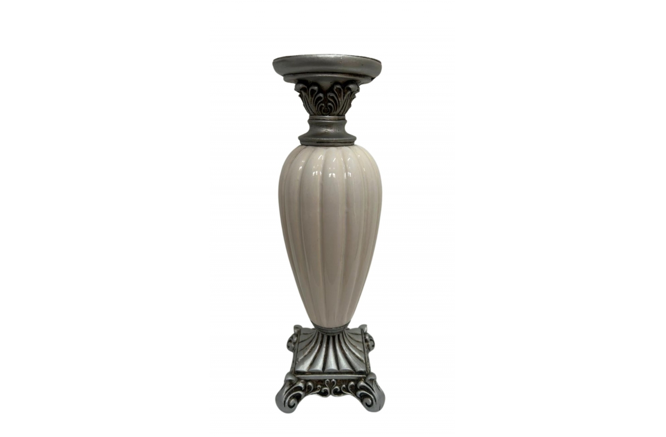 Castiçal off white em cerâmica. Medidas: 32cm altura x 9cm base