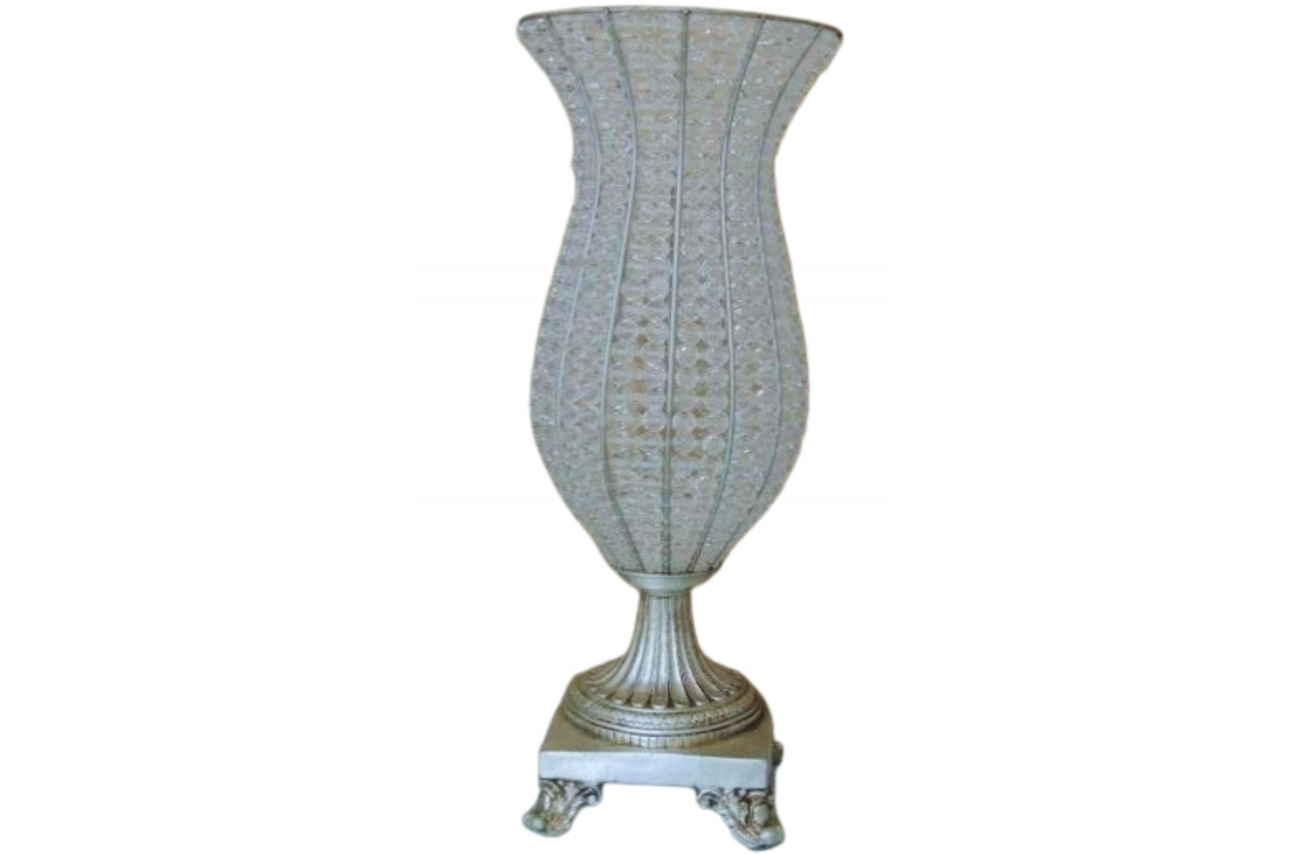 Vaso para flores em pedraria e resina prata. Medidas: cm de altura x cm de boca
