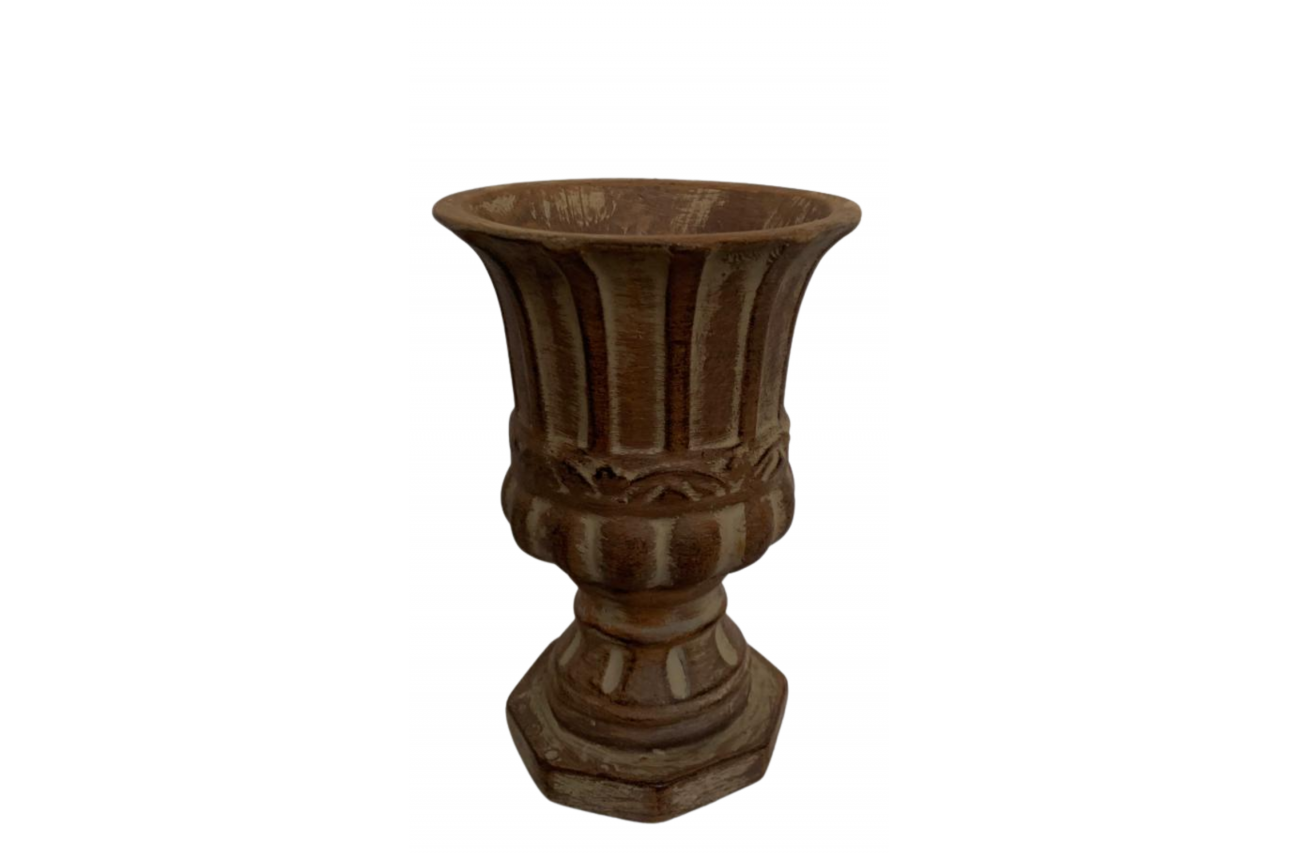 Mini vaso para flores em resina marrom acizrentada. Medidas: 20cm altura x 13cm boca