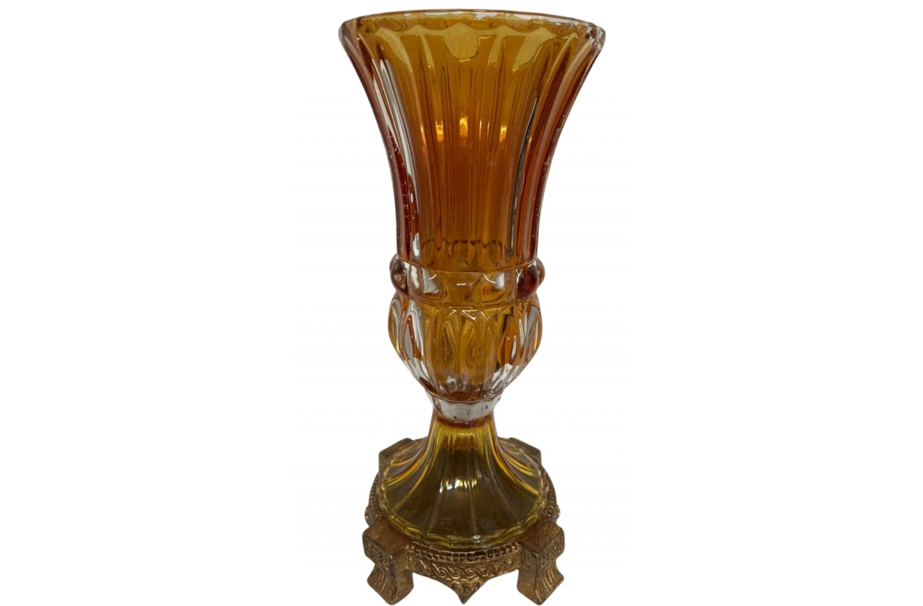 Vaso para flores em vidro âmbar e resina dourada. Medidas: 47 cm de altura x 20 cm de boca