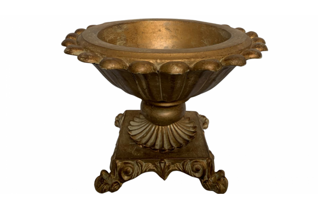 Vaso para flores ou bandeja para doces dourada. Medidas: 20cm de altura x 17,5cm de boca
