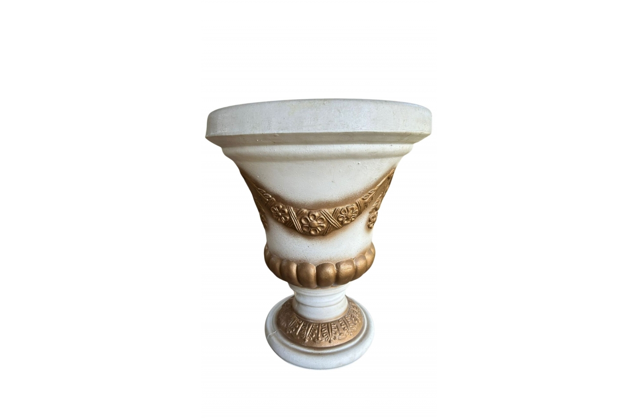 Vaso em polietileno na cor branca com toque bronze. Medidas: 54,5 cm altura x 45,5 cm de boca.