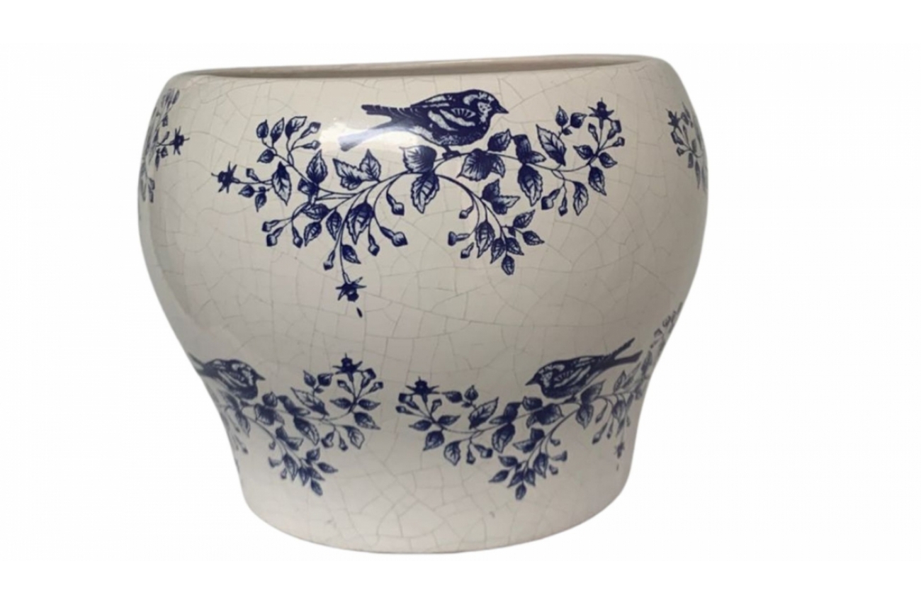 VASO CERÂMICA BRANCO E AZUL PÁSSAROS P