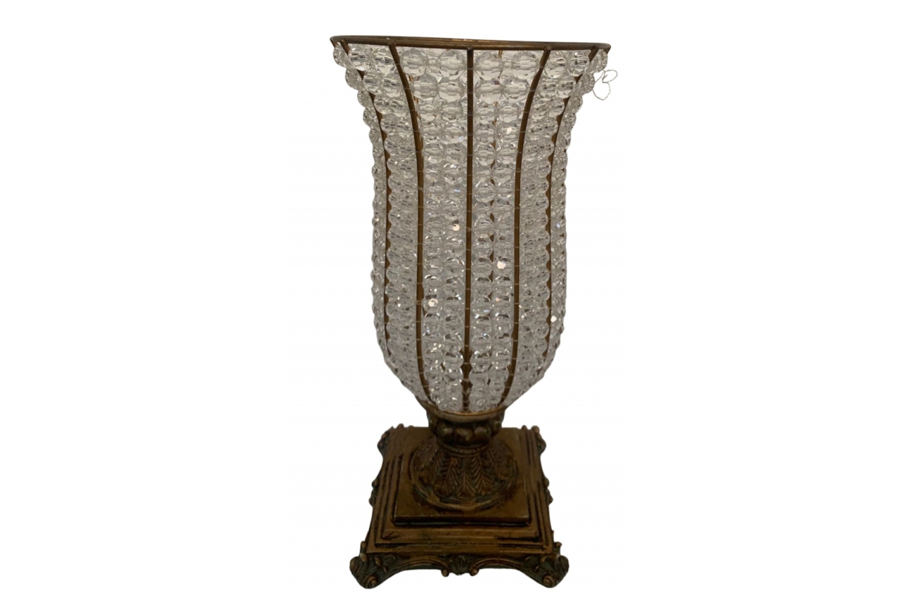 Vaso para flores em pedraria e resina dourada. Medidas: 39cm de altura x 18cm de boca
