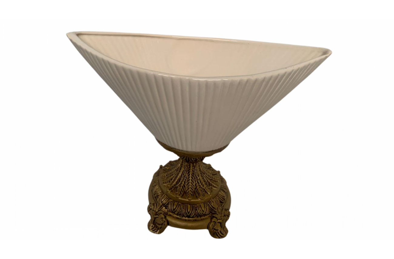 Vaso largo listra off white resina dourada. Medidas: 25cm altura x 34cm boca